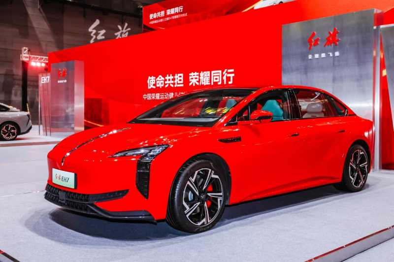 作为红旗新能源的典范之作,红旗EH7荣耀版以丰富的品牌标志性元素凝练展现红旗与荣耀健儿所共有的自强不息、为国争光的信念与志向。红旗EH7荣耀版历经3000稿草图设计与400轮精修,成就轿跑级车身比例的优雅姿态。外观上融入“气贯山河、红光闪耀”的旗贯长红标识,与健儿“荣耀长虹”之势遥相呼应。