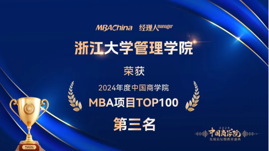 第三名 浙大MBA荣获中国商学院最佳MBA项目TOP3!