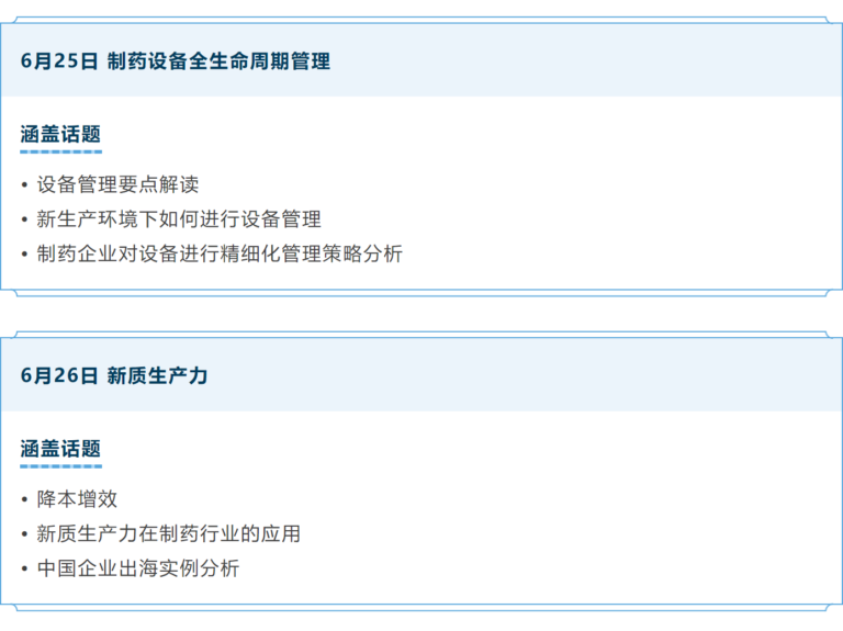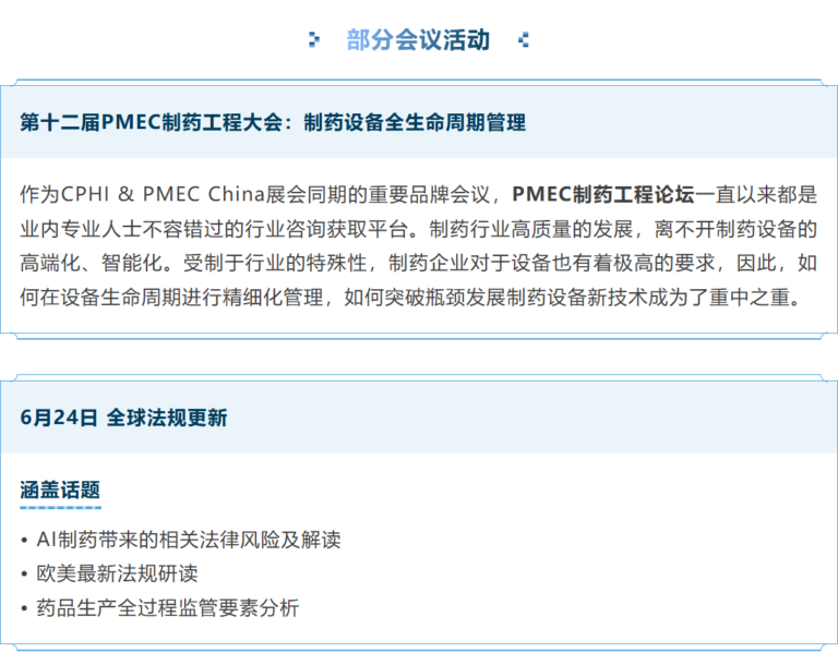 主办方特别在N6馆设置现场会议活动区域。届时,来自制药企业、设备企业、科研院校、咨询机构的行业大咖将齐聚一堂共同探讨制药工业的未来发展以及技术发展路线。同时,会议活动也将吸引来自集成设备,制药企业设备部的意向买家集中参会,助力展商开启无限商机。